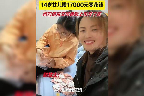 2022年05月12日小朋友遇到困難,父母幫忙解決,是很自然的事情;如果父母遇到困難,未成年的孩子伸出援手,那就讓人覺得驚訝又暖心了。江蘇南通有一名趙姓女子,最近她因為身上缺錢,14歲的女兒竟拿出人民幣1萬7,000元(約台幣7萬5,500元)給她週轉。她承諾「會雙倍奉還」,也為女兒驕傲,認為女兒「理財有方」~