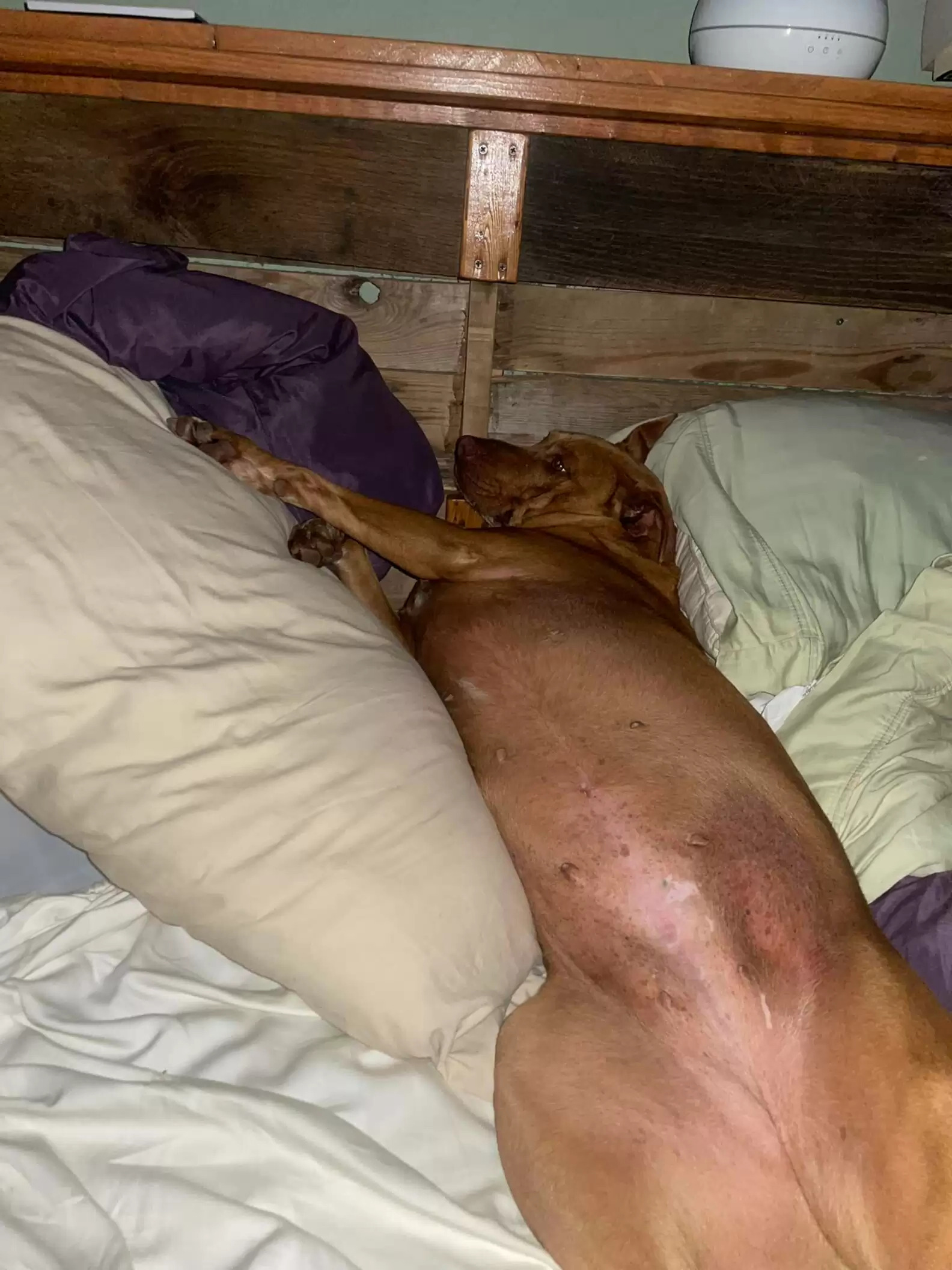 ▼Julie表示,那天早上她和丈夫醒來後,發現一隻狗狗躺在枕頭上。剛開始他們沒在意,但總覺得怪怪的,因為他們家的3隻狗狗都沒有這樣的睡眠習慣。當陽光透過窗簾照進房間,兩人才驚訝地發現:「這是誰?!牠根本不是我們家的狗狗!」