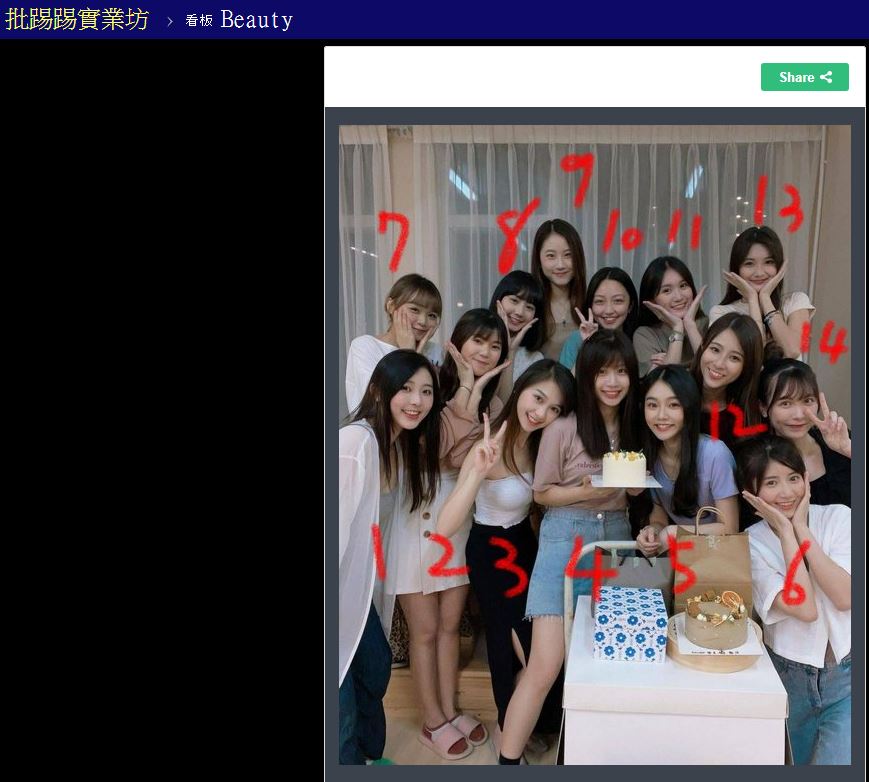 ▼這張正妹合照在台灣和香港的網路上都引發熱議,還有人將照片中的女孩編號,po到PTT表特版讓大家投票「誰最正」。有網友開玩笑說:「全部都漂亮」、「小孩子才做選擇,我全都要」。
