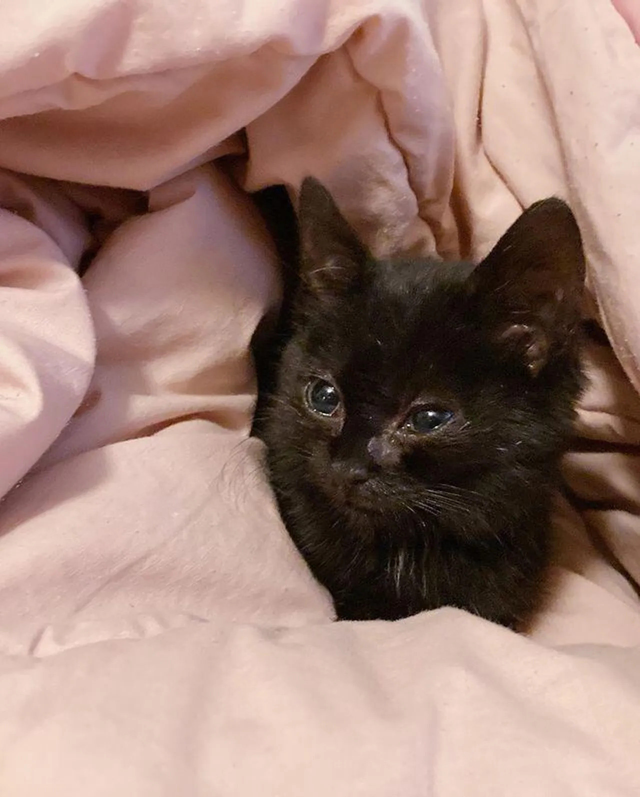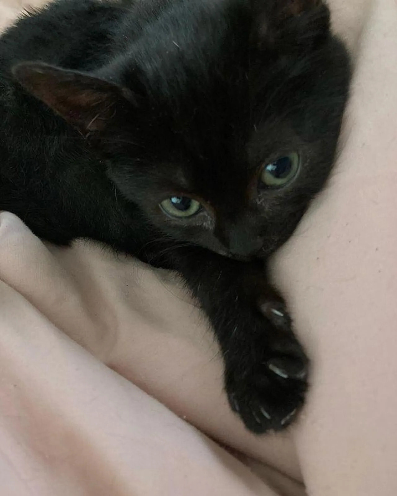 2022年06月01日長期飯票自己找~國外網友Precious Kimberly表示,有一天她發現一隻陌生的小黑貓坐在自家的車道上,牠看起來很可憐,不僅瘦骨嶙峋,眼睛還受到感染。Precious擔心貓咪的身體情況,決定暫時將牠帶回屋照顧,等牠恢復健康再找人送養,沒想到這隻小貓徹底改變了她的生活…
