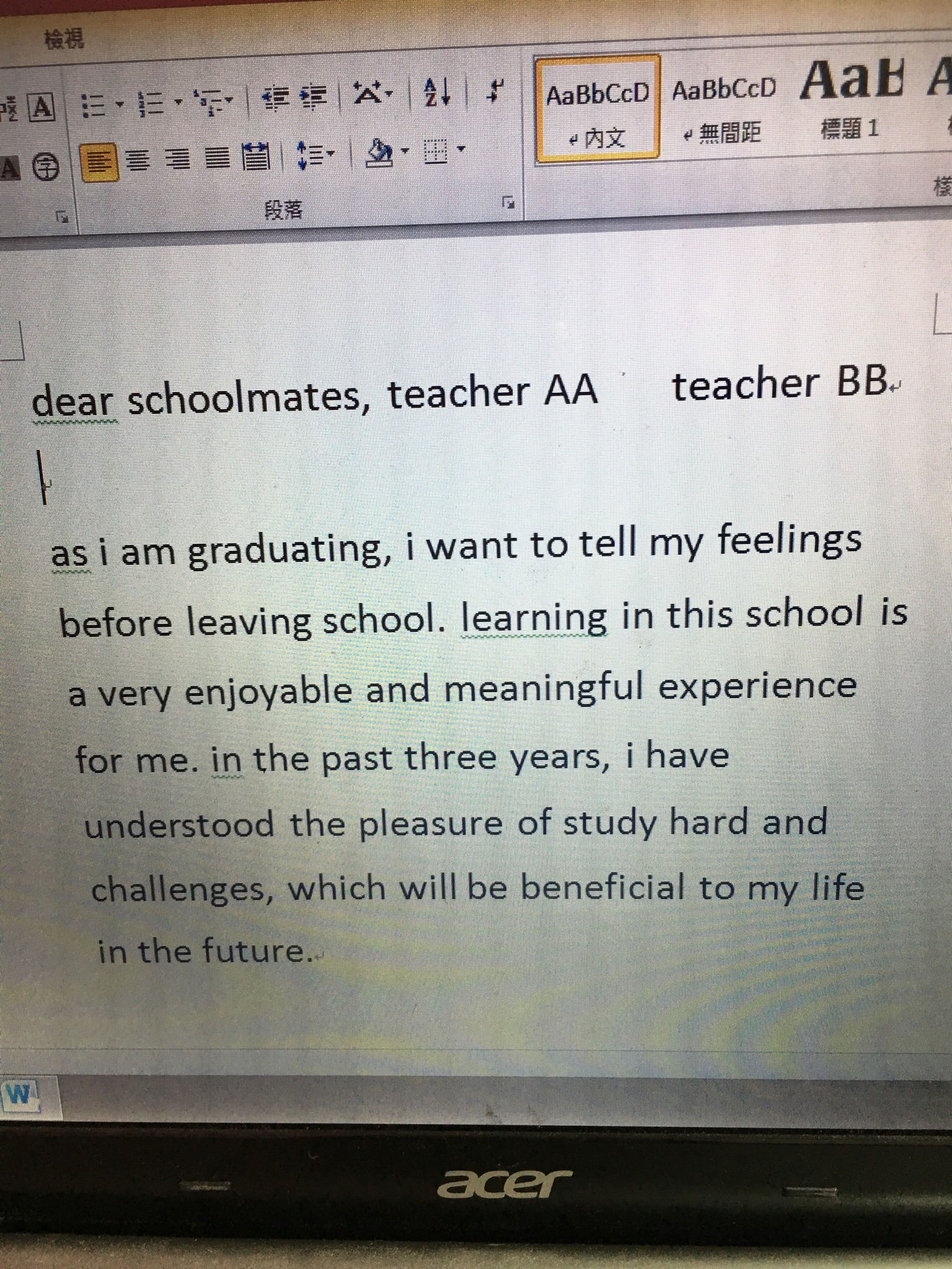 2022年06月20日日前一位爸爸收到幼稚園發來的通知單,內容顯示小朋友馬上就要從大班畢業,需要錄製30秒的英文感言,還要附上文字檔。他無奈說,自己的英文沒有到十分精通,感覺心好累。他貼出自己擬好的草稿,請網友們幫忙檢查文法和錯字。