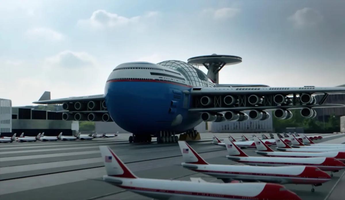 ▼按照蓋利的發想,「天空郵輪飯店」將採用核子動力,由核融合反應器提供燃料,永遠不需要降落加油。乘客與機組員需要搭乘不同的飛機登上這艘雲端遊艇。「天空郵輪飯店」上有一個廣大的娛樂平台,包括購物商場、健身房、游泳池、餐廳、電影院、劇院,還有設在一個單獨機翼的會議中心。新婚夫婦可以在高於飛機機身的360度展望台上舉辦婚禮。