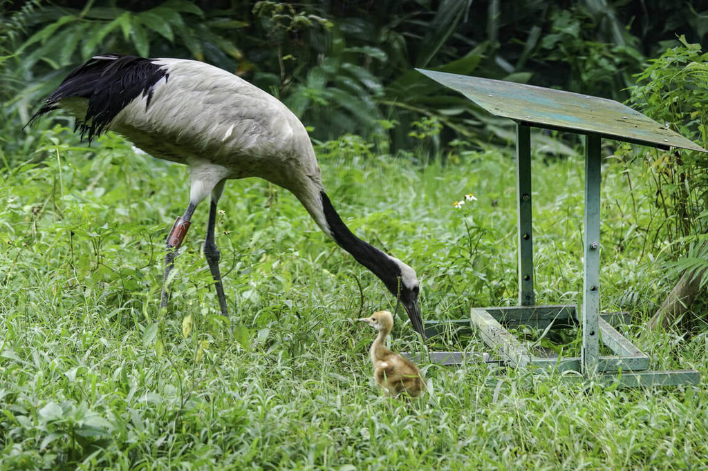 來台11年!北市動物園丹頂鶴「終於有好消息」 升格爸媽帶雛鳥趴趴走超可愛