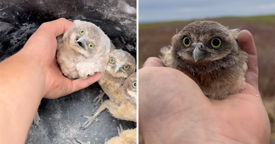 ▼工作者們用塑膠桶、金屬絲網和水管等道具建造洞穴,為穴鴞們搭建新家。這些人造洞穴更加舒適,也有利於生物學家觀察動物生態。一位動物保護者將轉移穴鴞寶寶的影片po出來,看起來超可愛。