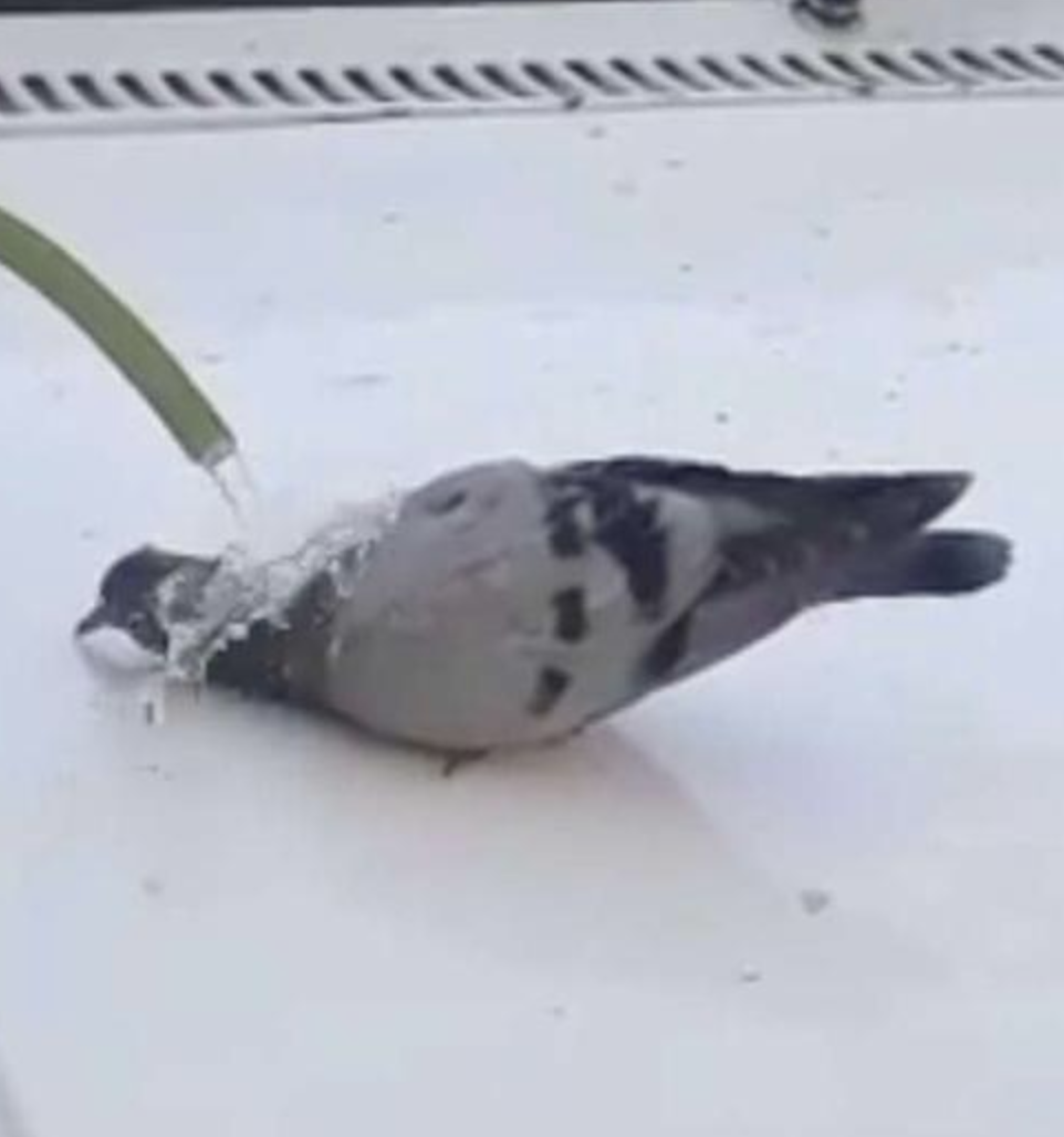 ▼Recep幫鴿子沖水降溫消暑: