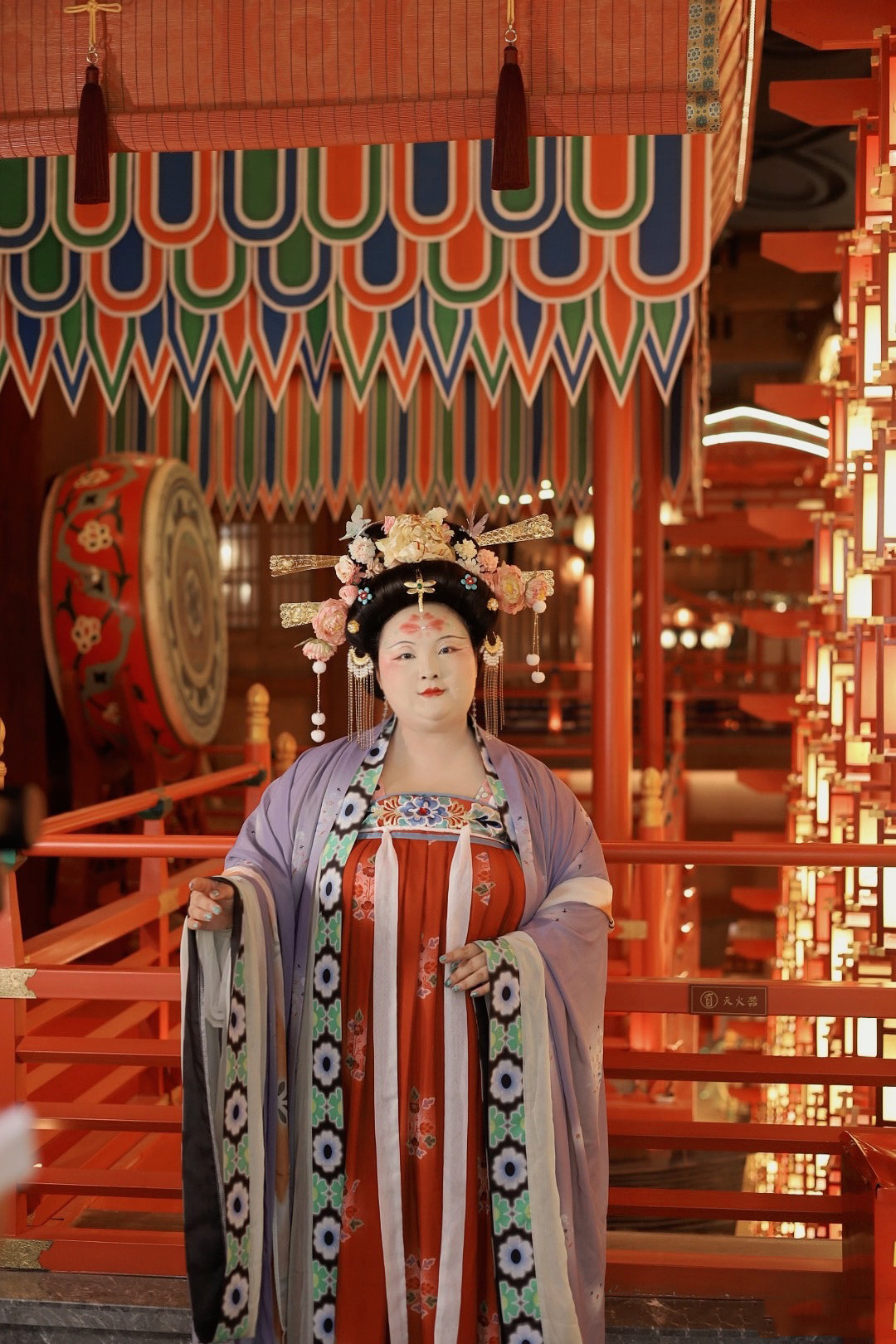 ▼2019年時,王宇第一次穿漢服,朋友們都說她很像現實版的楊貴妃,她就開玩笑給自己起了一個「楊貴肥」的名字。現在王宇在西安唐風市井生活體驗街區開了一間唐代點心文化店鋪,每天下午都會為遊客表演唐代點心的製作,並展示書法。