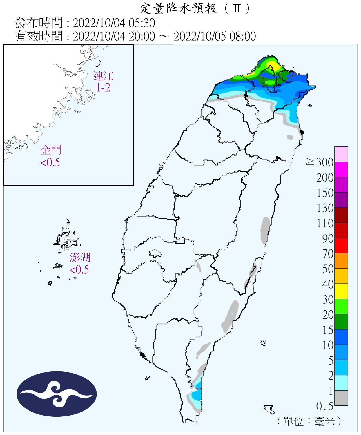 ▼陳伊秀表示,週四(6日)至週日(9日)受東北季風影響,桃園以北和東半部有局部降雨,南部和其他山區午後有局部短暫雨。週五(7日)、週六(8日)東北部、花蓮有局部較大雨勢機率。下週一東北季風再增強,新一波冷空氣水氣較多,桃園以北和東半部有局部降雨,其他地區多雲到晴,午後南部和其他山區有局部短暫陣雨。