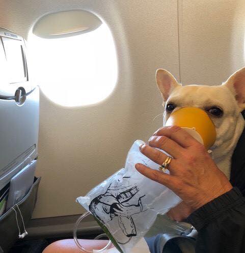 2022年10月25日對很多飼主來說,寵物就像自己的家人一般。國外一對夫妻養了一隻可愛的法鬥,日前他們帶愛犬一起搭飛機,沒想到起飛時,狗狗突然舌頭變紫、呼吸困難,空服人員發現後立刻採取措施,將氧氣罩給狗狗戴上,狗狗這才轉危為安!
