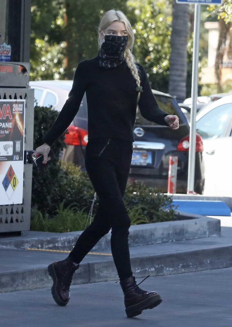▼從照片中可以看到,安雅泰勒喬伊身穿黑色上衣、黑色褲子,腳踩Dr Martens 'Jadon' 靴款。身高169公斤的她看起來窈窕纖瘦,坐在路邊隨興玩手機、喝咖啡的樣子超吸睛。有粉絲注意到,她的蘋果手機依然是iPhone 8 plus。