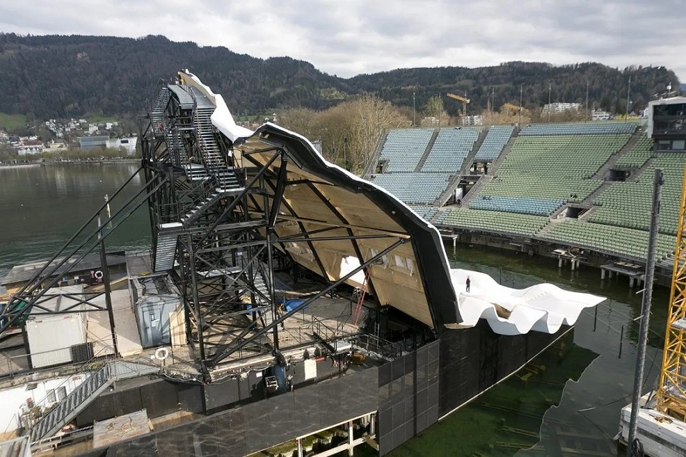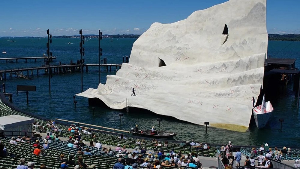 ▼舞台搭建在康姆斯坦茨湖上,佈景的寬度比普通劇院大2/3左右,才能不受到周圍船隻的干擾。舞台雖然看起來像摺紙,卻非常堅固,能夠應付風雨、積雪等特別天氣。