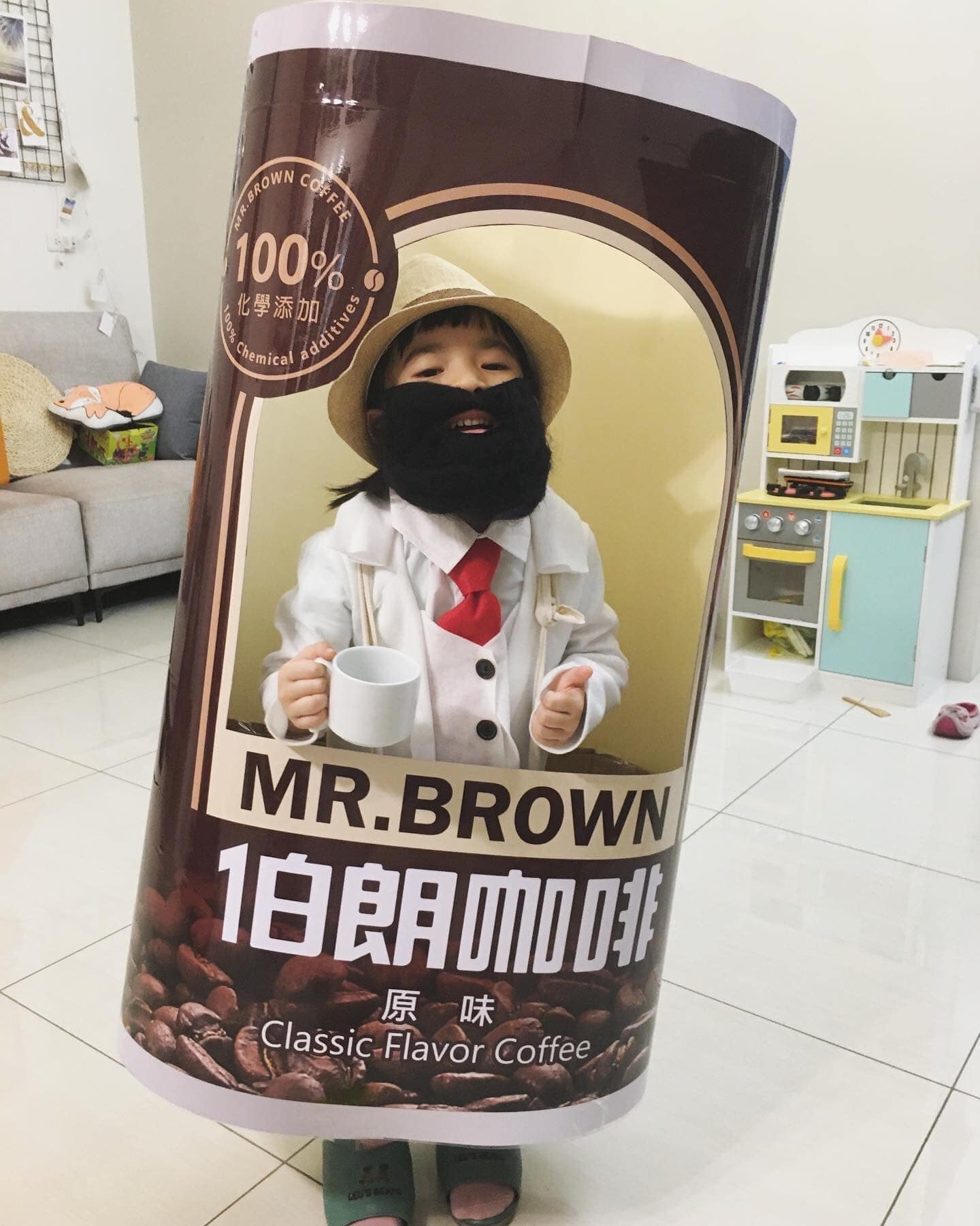 ▼原po表示,朋友最近幫孩子準備萬聖節裝扮,最後的成果超級可愛,大家看到後都表示手太巧了!這位媽媽沒有將孩子扮成熱門的公主或超級英雄,反而將孩子打扮成一罐「伯朗咖啡」。