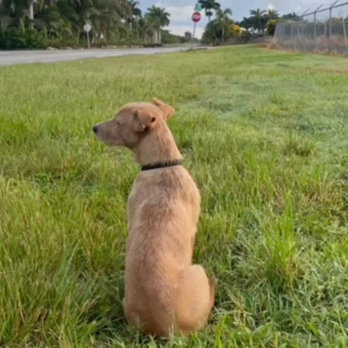 2022年11月30日日前邁阿密女網友Adriana Figueroa開車回家時,在路邊看到了一隻孤零零的小狗。牠獨自坐在草地上,一臉落寞地望著遠方,似乎在等待家人出現。Adriana從事動物救援,見過不少被遺棄的狗狗,她看著小狗的背影,心都要碎了。
