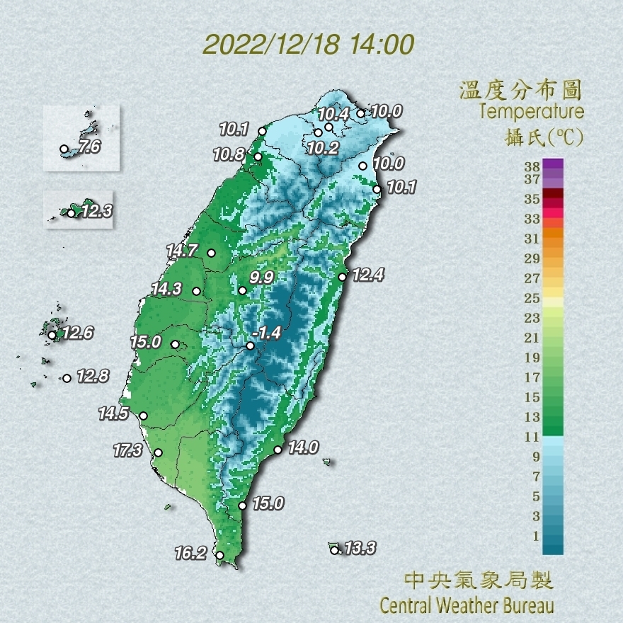 2022年12月19日還會更冷?!中央氣象局表示,今天(19日)寒流逐漸減弱,氣溫逐漸回升,各地早晚氣溫仍偏低。明天(20日)溫度繼續回升,但僅僅1天而已,因為週三(21日)又有另一波強烈大陸冷氣團來襲。冷空氣一波接一波不斷遞補,週三、週四(22日)溫度下探11至12度。