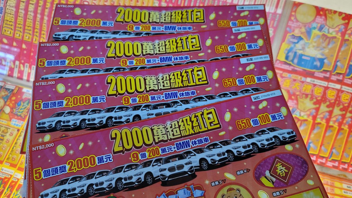 2023年01月13日過年期間,不少人會買刮刮樂試手氣,尤其是只在過年推出的「2000萬超級紅包」刮刮樂,今年有850個機會可以刮中100萬現金,所以特別受歡迎。新竹一對30幾歲的情侶檔砸3.6萬元購買整本彩券,一開始只刮出小獎項,沒想到最後竟刮出100萬大獎,兩人在店內開心到哭出來!