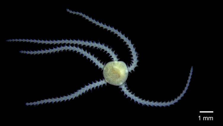 ▼海保署表示,首次調查發現的32種蘭嶼新紀錄種,包含21種甲殼類、7種棘皮動物及4種軟體動物。其中小雙鱗蛇尾(Amphipholis squamata)更是台灣的新紀錄種,令人非常驚喜。小雙鱗蛇尾體型非常小,體盤直徑約1.8mm,偏好躲藏在泥沙中,平時很少能見到。