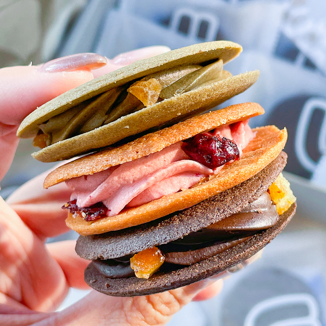 「火火選物」推出的「KuchiKuchi」法式餅乾有草莓起司、鐵觀音蜜桃和濃味可可3種口味,酥脆的餅乾體搭配三層夾心,內餡選用本土水果蜜漬製成的果丁,口感超豐富,是很適合這個浪漫節日的點心~