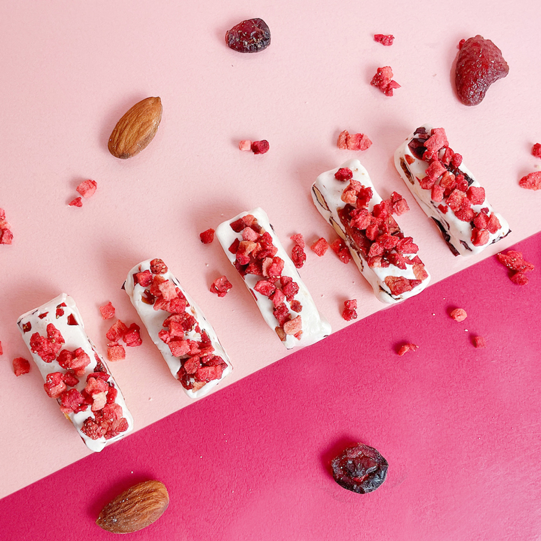 「紅臉頰雪糖」是用日本靜岡紅臉頰草莓和苗栗大湖草莓,透過改良式翻糖技術製成的減糖牛軋糖。真材實料被純淨的糖衣包裹,吃起來酸酸甜甜,又不會過膩,實在超療癒。