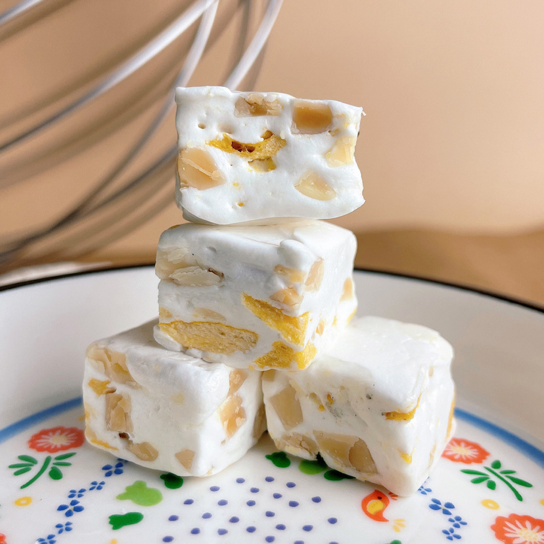 日式水果軟啾糖,看起來有點像牛軋糖、牛奶糖,但多了蓬鬆空氣感,軟綿綿入口即化,口感再升級!每一口都能吃到台灣新鮮水果製成的凍乾,每一口都超啾西!