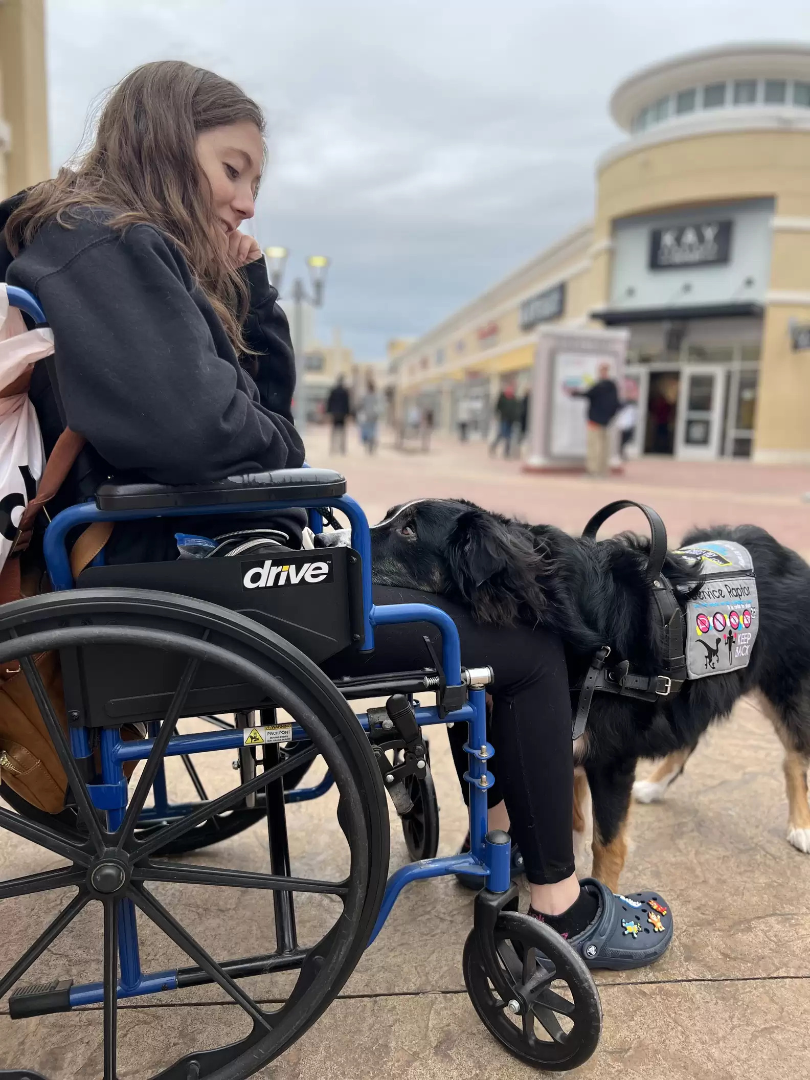 ▼Katie患有「姿勢性心搏過速症候群」(POTS),平時久站會心跳加速甚至昏厥。幸好Bailey一直陪伴在她身邊。Bailey受過專業的訓練,能提前發覺Katie的情況,在她感覺不適前就提醒她坐下來休息,並給她送上需要的物品。