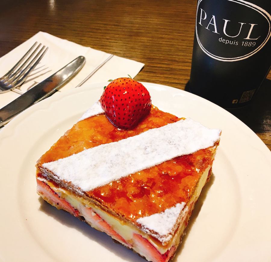 來自法國、擁有百年歷史的PAUL,是很多甜點控超愛的名店。店內的法式麵包很受歡迎,蛋糕系列在IG上討論度更高。「草莓千層派」是將烤得酥脆的餅皮搭配滿滿的卡士達醬,酸甜的口味擁有撫慰人心的魔力,吃起來超療癒!