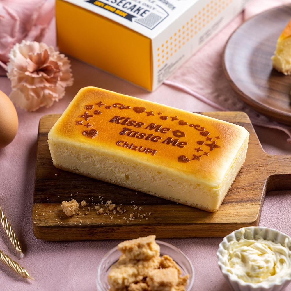 ▼起司控的白色情人節蛋糕首選!「ChizUP!」Kiss Me Baby招牌黃金起司,以黃金比例的乳酪配方,嚴選天然食材,透過繁複手工分蛋製作及水浴烘焙法,提昇蛋糕的綿密滑順口感,金黃色的外表下,蘊藏著深不可測的濃郁起司風味,濃濃的奶香味更為白色情人節增添甜蜜氛圍。現在預訂有優惠,原價510元,現價480元
