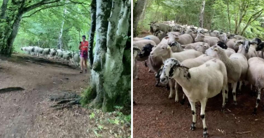 2023年03月11日慢跑是非常健康的運動方式之一。日前法國女網友Eleanor Scholz在森林中看到了有趣的一幕,當時一名女子正在慢跑,一群小羊竟跟在她身後。期間她停下腳步聊天,羊群也停下來等待。Eleanor將這有趣的畫面拍下來po上網,網友們笑說:「沒想到跑一跑就變牧羊人了。」