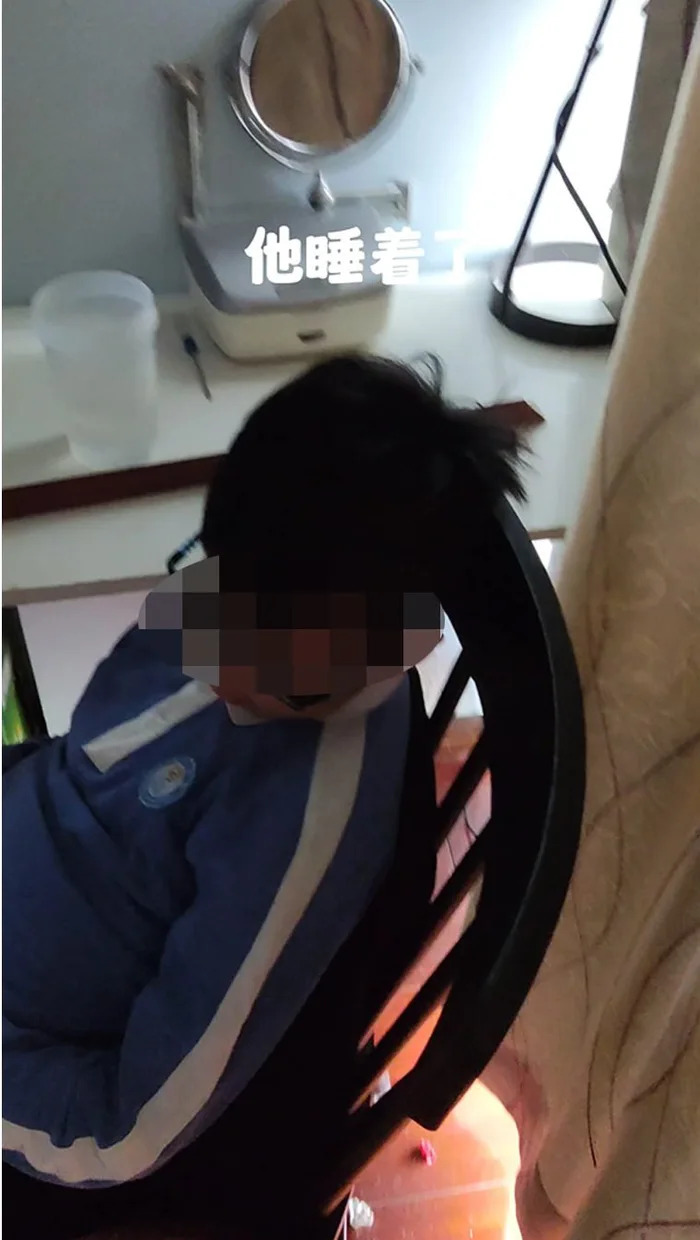 ▼黃父決定給兒子請一天假,讓他自由玩。最初兒子很開心,馬上拿起手機玩起遊戲。可是他一夜沒睡實在太睏,不久之後就開始不時變換姿勢,感覺十分痛苦。後來兒子直接躺在椅子上睡著,爸爸特別把他叫醒,讓他繼續玩。
