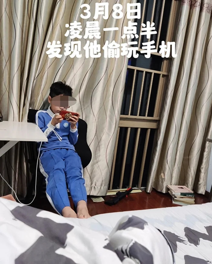 ▼黃父表示,3月8日凌晨1點左右,他發現兒子在偷玩手機遊戲,當場氣炸。「我們平時是允許他玩的,每天做完作業、家務、運動、閱讀之後可以玩半小時,周末可以1小時。但我們肯定不允許他偷玩,三更半夜偷玩,會影響第二天上學。」