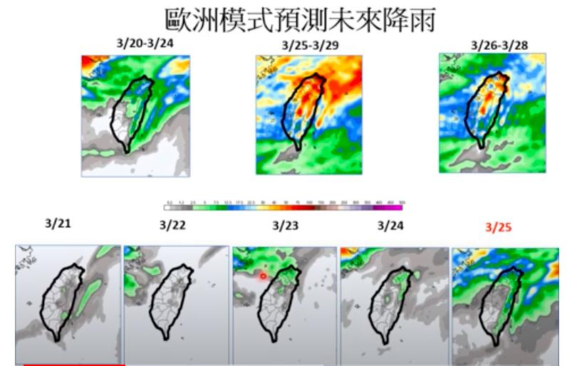 ▼下週一全台有雨,竹苗和高屏會有局部大雨;下週二全台有雨,竹苗和高屏會有局部大雨,嘉義以北及宜花有雨;下週三(29日)苗栗以北及宜花有局部短暫雨。但這波春雨解渴要解決南部缺水問題,還是很難。