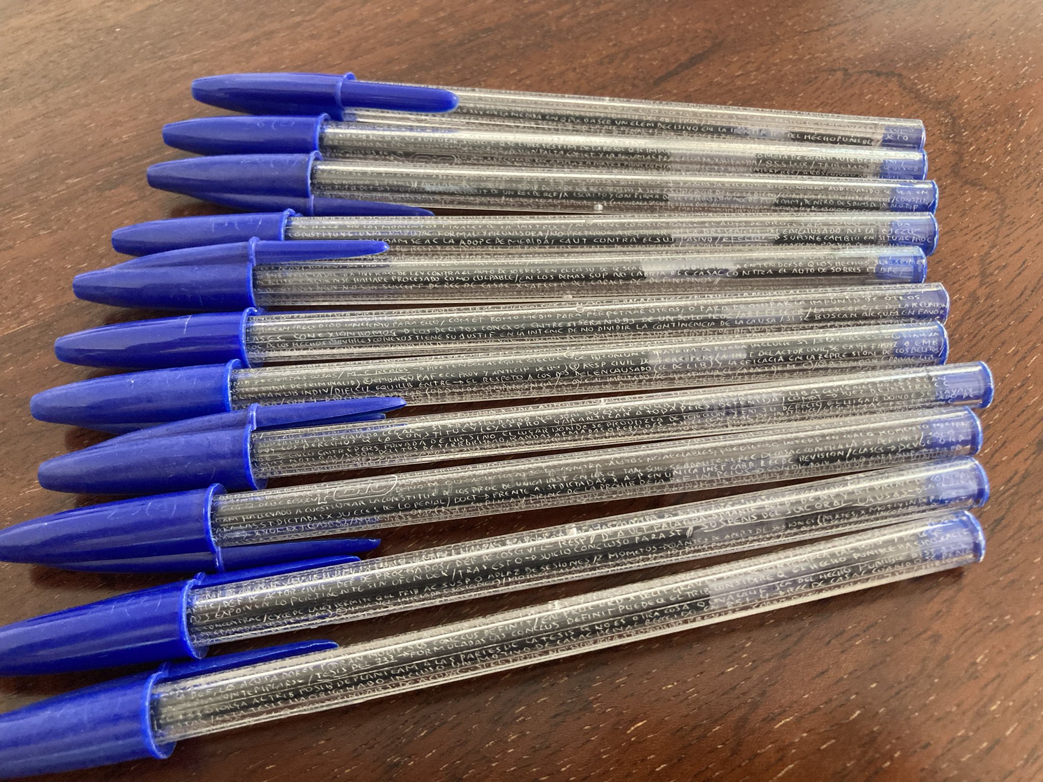 還有一名網友自稱是這位作弊學生的好友,表示對方以針代替筆在原子筆上刻字,還把每個章節的開頭註記在原子筆品牌Logo旁邊,並把每一支筆的墨水都灌到頂端,不禁令人感嘆「這完全是藝術品的等級,太狂了」!