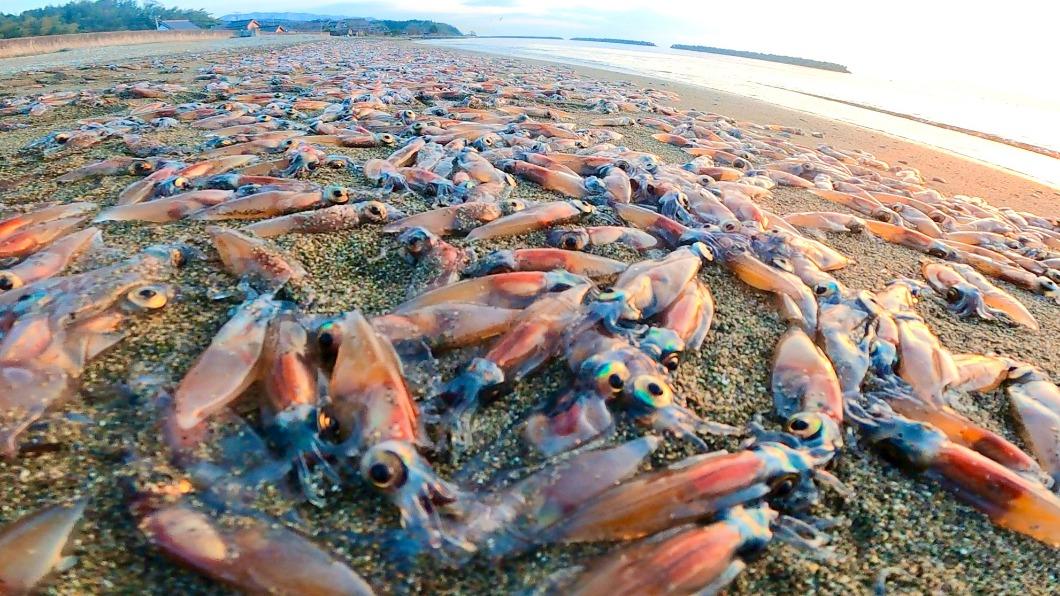 宛如末日!日海灘驚見大量烏賊「集體自盡」 網心慌:強震將至?