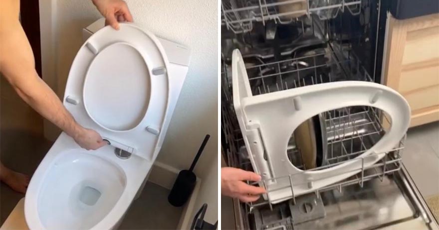 他拆馬桶蓋放進洗碗機! 網紅「駭客級」打掃技巧嚇呆全網:超噁