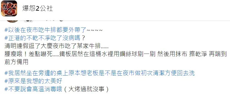 ▼這則貼文引起該夜市管委會的注意,並在底下留言說:「針對有消費者反映近日到夜市吃牛排,引發清潔衛生方面的疑慮,除特地向消費表達歉意,在此也重申管委會立場,我們一向最重視食安及相關衛生環境的清潔問題,要求攤商做好衛生清潔還有二次消毒,只要不配合,夜市不可能讓攤商進來擺攤做生意。」管委會強調,「另只要經查獲未按標準流程,或經消費者投訴反映,一經查證屬實,絕不姑息,要求該攤商不得繼續擺攤撤攤,未來更會持續嚴格把關,也感謝消費者的批評指教」。