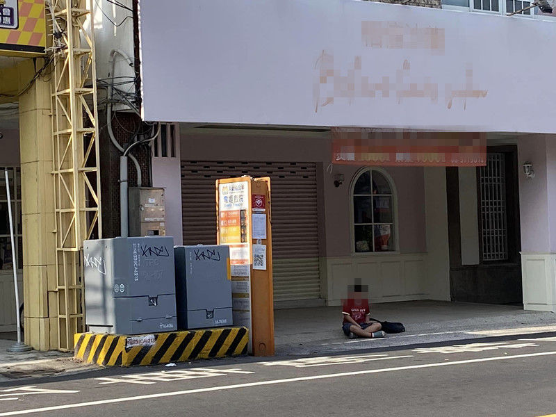 ▼原po在臉書社群分享3張照片,並說:「第一次看見這樣等公車的。」這些照片是在台南麻豆區中山路拍攝的,當時一名疑似國小男童在該處等公車,他先盤坐騎樓下,後來改換成躺在地上,最後又移動到旁邊的柱子,靠著柱子睡著。