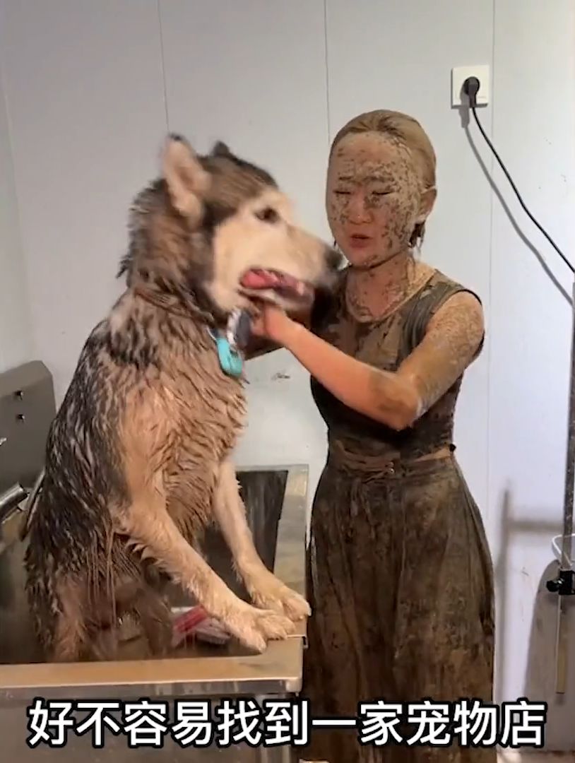 2023年04月25日大陸河南省鄭州市有一名飼主養了一隻哈士奇,日前她帶狗狗出門散步,沒想到狗狗太貪玩,竟突然暴衝,還跑到泥坑裡翻滾。飼主趕緊上前阻止,但泥坑邊太溼滑,她不小心失足掉了進去,全身都沾滿泥巴。飼主本想將狗狗送到寵物沙龍洗澡,但被拒絕,最後只好親自上陣收拾殘局~