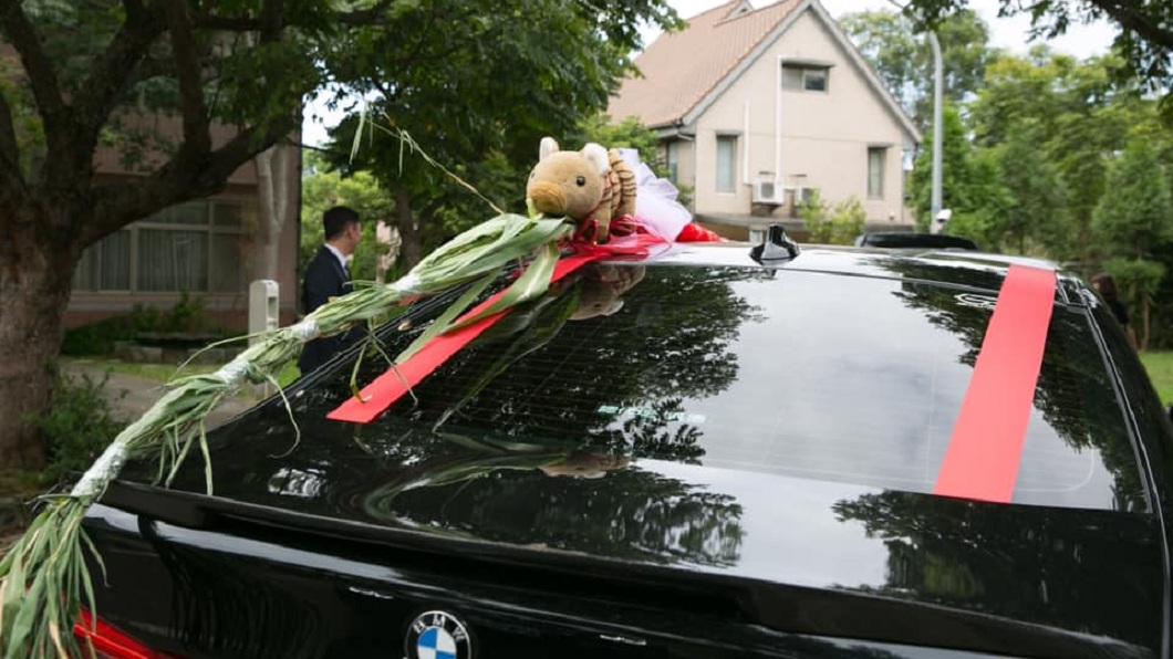 婚俗禮車要綁豬肉!岳父超有創意改綁「小豬娃娃」 網讚翻:好可愛