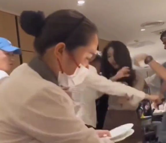 ▼先前台中市發生KTV鬥毆事件,2名女子大打出手、潑熱湯,恐怖畫面引發討論。近日有網友在臉書社團「爆廢公社」上傳一段影片,該影片內容為四川成都錦江區海底撈發生的打架事件。當時2名女子因為說壞話被對方聽見,先是發生口角,進而變成肢體衝突。雙方的朋友也站出來幫忙,演變成打群架事件。
