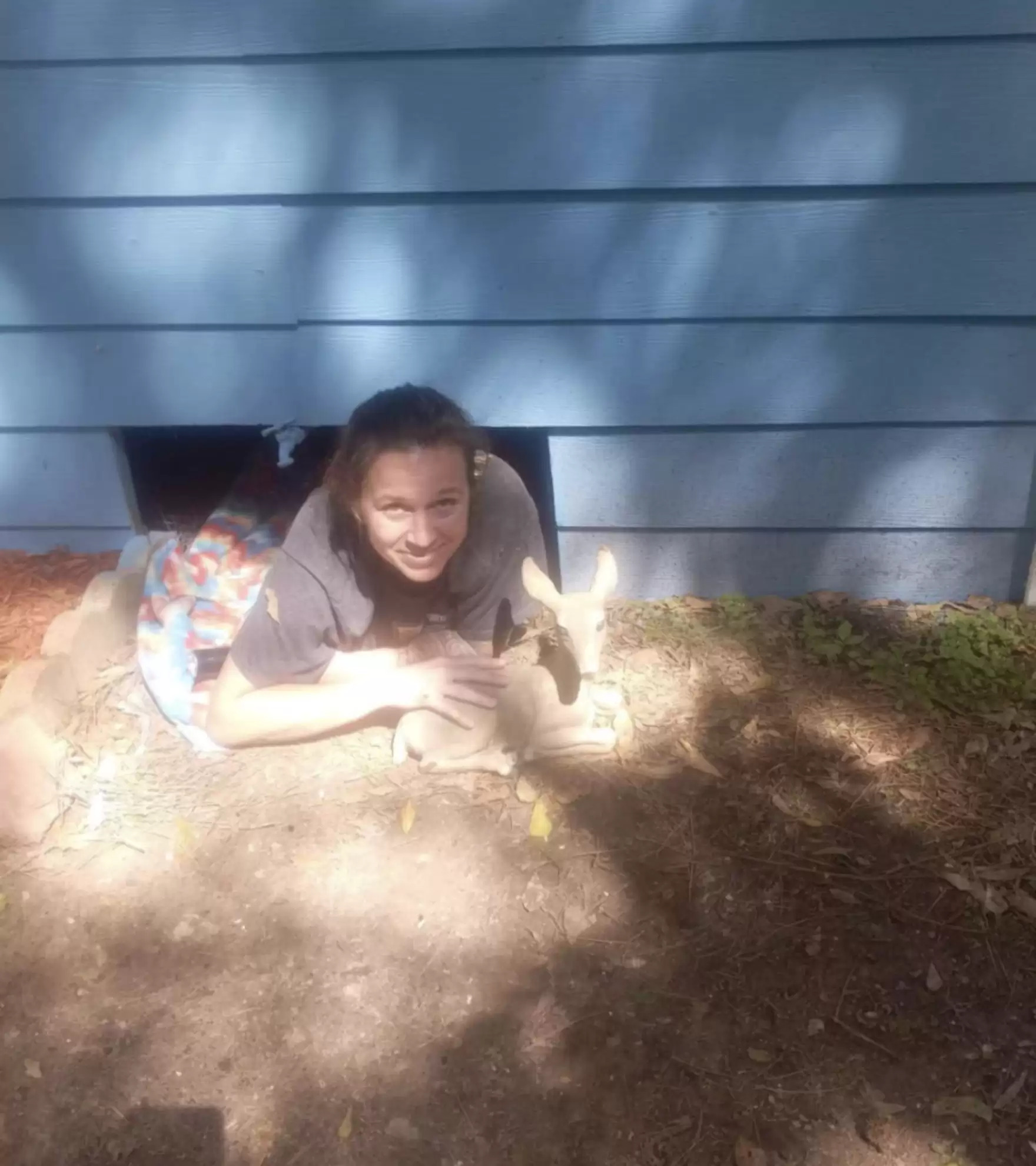 2023年05月12日日前美國一名野生動物救援人員接獲通報,稱有一隻幼鹿被困在空屋底下。她迅速趕到現場,費盡千辛萬苦鑽進房屋下窄矮的縫隙,最後卻發現趴臥在角落的不是鹿,甚至完全沒有救援的必要。她爬出來後無奈笑說:「這真的很蠢,但沒有小鹿受傷也讓我鬆了一口氣!」