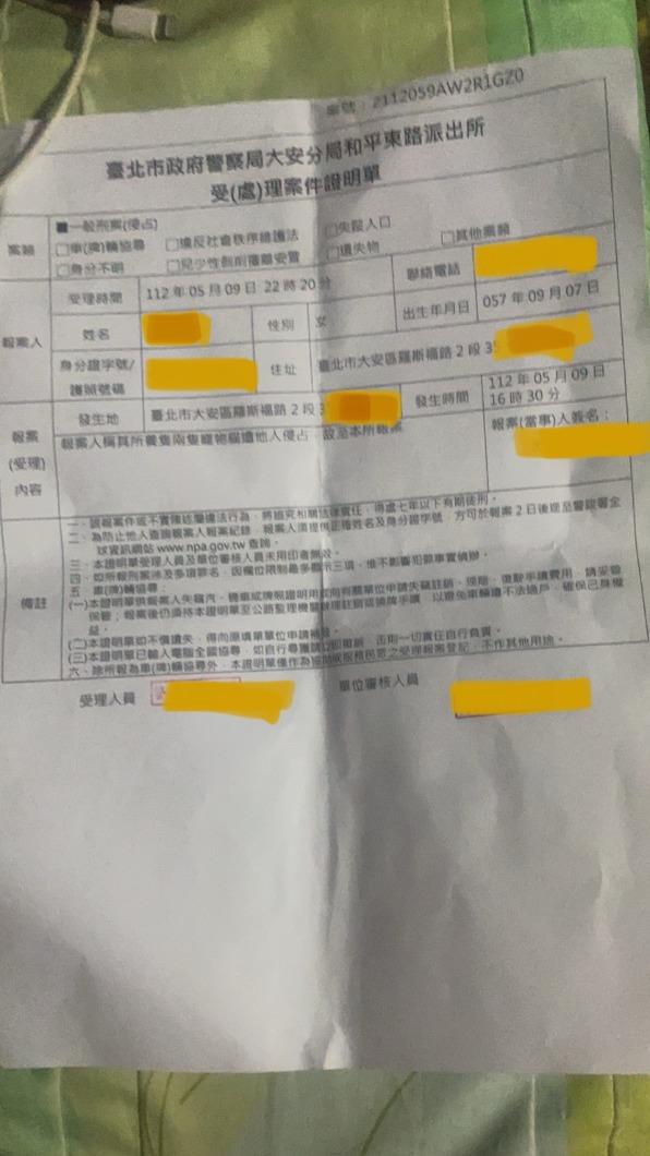 原po稱,事後飼主已經前往轄區大安分局和平東路派出所報案,向對方提告侵占,同時也出示自己養育貓咪的施打預防針紀錄,證明這隻貓咪確實為自己所養。對此,警方已受理報案,並將調閱監視器,鎖定對象後,將人通知到案說明,並協助尋回貓咪。
