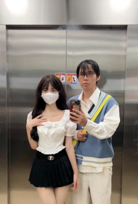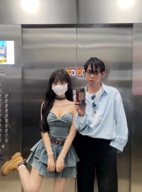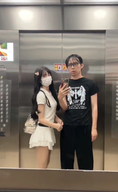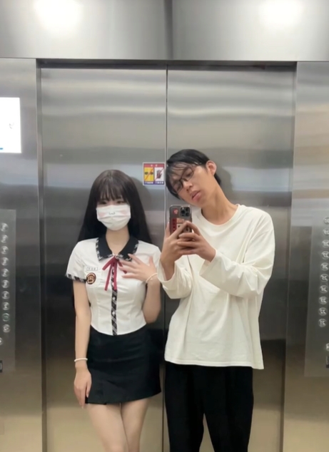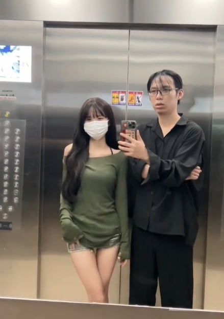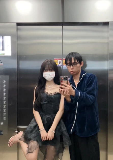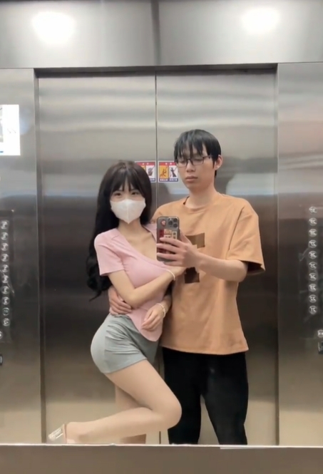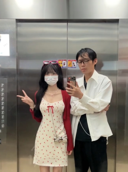 小情侶每日電梯自拍放閃!男狂遭網嗆「快去洗頭」 女生拉下口罩曝真面目