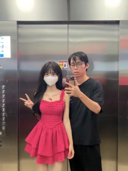 日常生活中很多情侶會拍合照放閃,「小紅書」APP上就有一個小情侶經營的帳號「可樂薯條」,兩人經常分享放閃照。他們的照片大多是在電梯裡對著鏡子自拍,女生的服裝造型精緻百變,男生卻不修邊幅,十分邋遢。兩人巨大的反差引發討論~