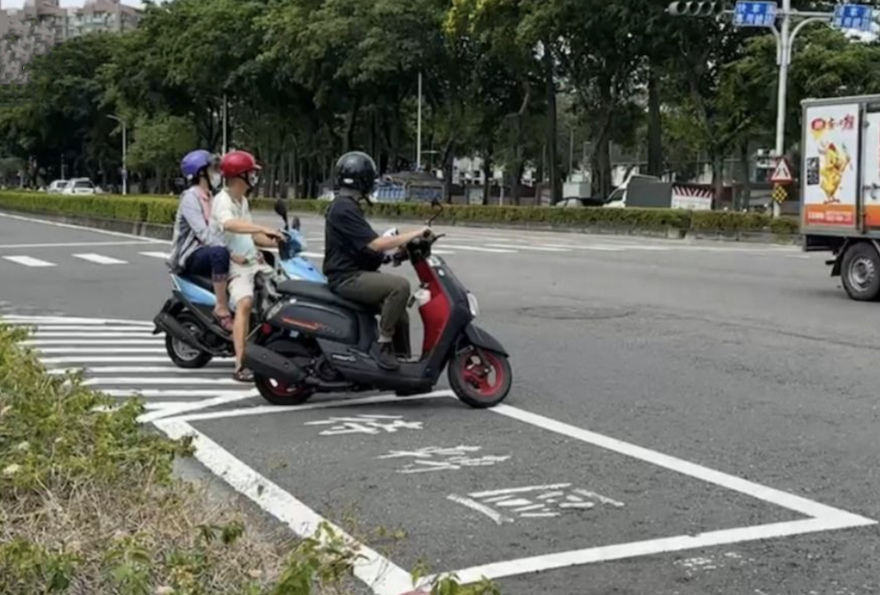 ▼實際到現場能夠看到,不少騎士待轉時都會靠著外線進到待轉區。當地民眾指出,通常要待轉都會靠外側,如果照著槽化線騎反而更危險,也不是畫了槽化線,待轉區的機車就沒有被直行車撞的風險,直呼槽化線的存在「意義不明」,根本是陷阱。