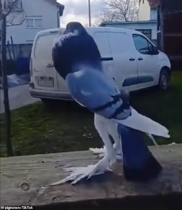 ▼據外媒報導,影片中的鳥類是一隻英國信鴿(English Pouter),不過目前未知確切的拍攝地點。專家認為,這隻鴿子的體型如此特別,應該是經過多年選擇性繁衍的結果。雖然英國信鴿在英國與其他歐洲國家都很常見,但長成影片中這樣的「異形鴿子」還是嚇壞不少人。