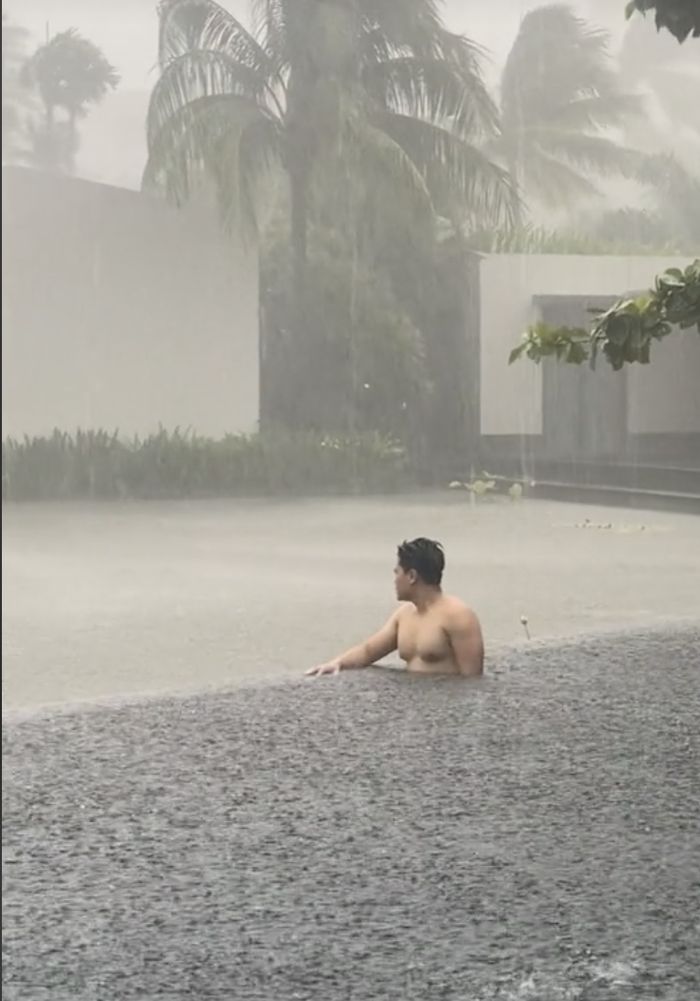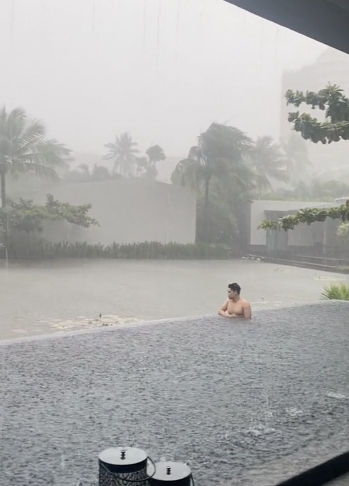 2024年01月14日越南一名男子為了去富國島(Phu Quoc)度假,辛苦存了1年的錢,但出發前忘記看天氣預報,到達目的地後恰巧碰到雷雨天。他不願意浪費出遊的好機會,堅持進入飯店泳池拍照,並將照片po到社群平台,網友們看到後紛紛表示同情。