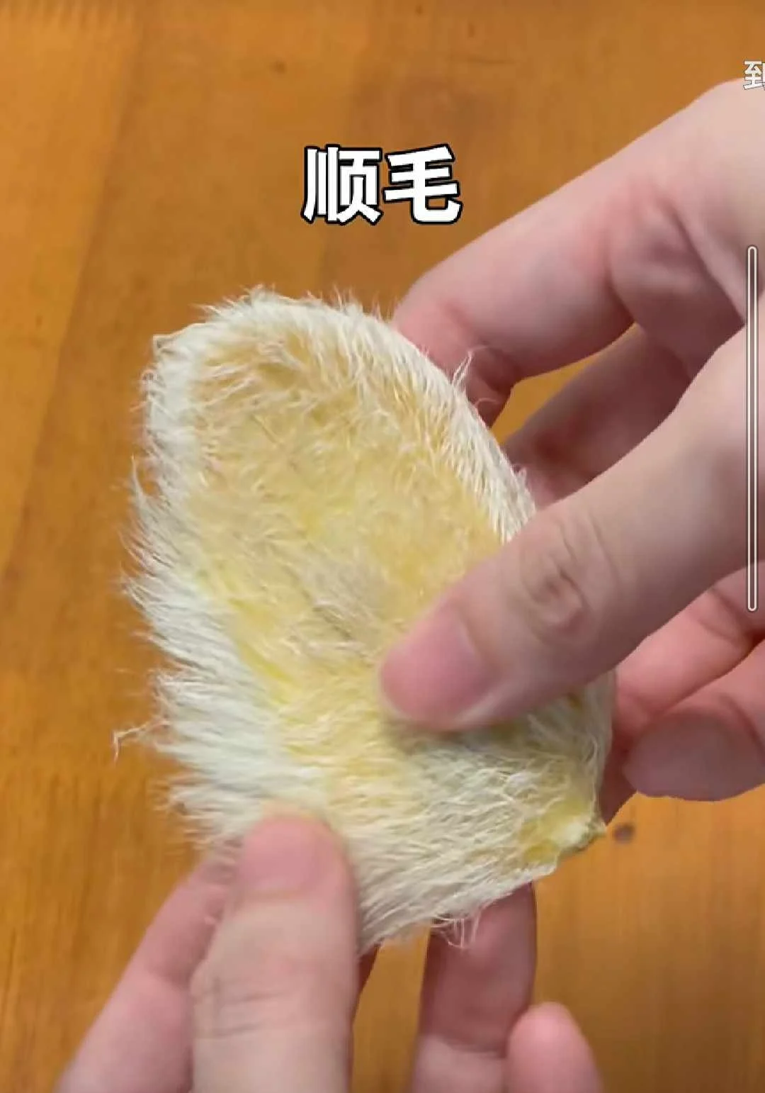 ▼吃完芒果後要用牙刷將芒果核刷乾淨,刷完後的芒果核幾乎沒有果肉殘留,看起來毛茸茸的。
