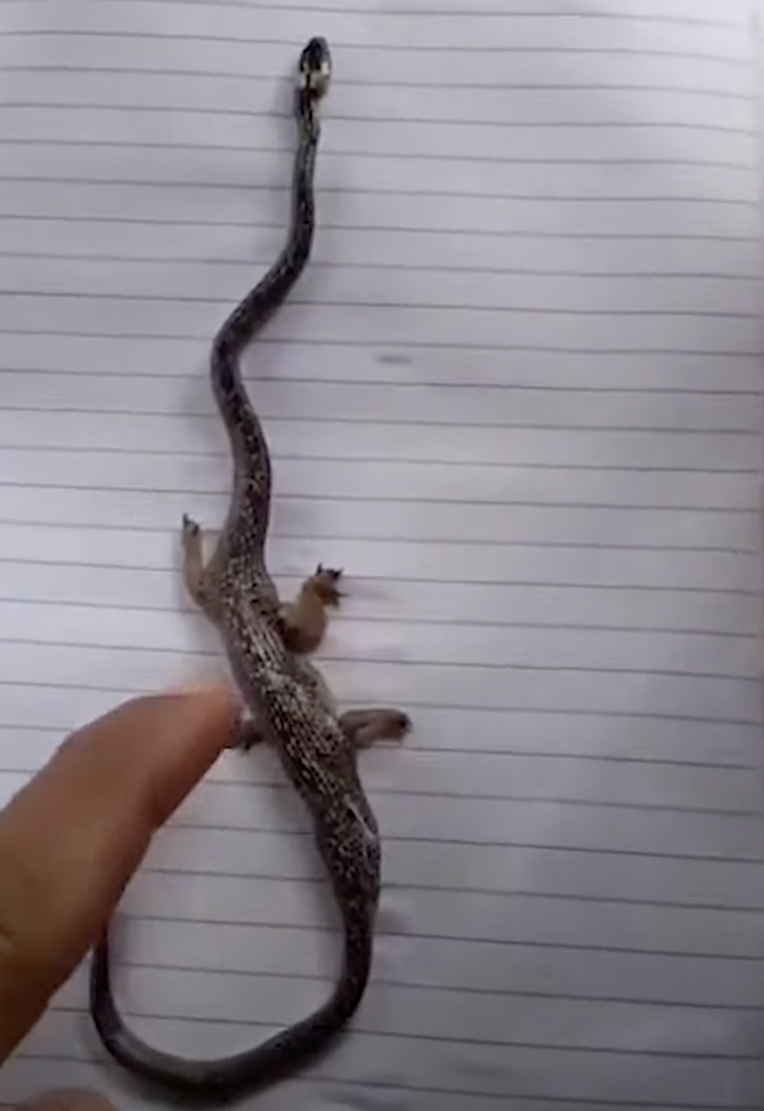 2023年09月15日日前菲律賓一處村莊發現一條外型奇特的蛇,牠的頭部和尾巴跟普通的蛇一樣,但腹部異常突起,還長有4隻腳,看起來非常奇怪。除此之外,這條蛇的攻擊性也非常強,村民們為了自保只好將牠殺死。這一奇特的生物在網路上引發熱議。