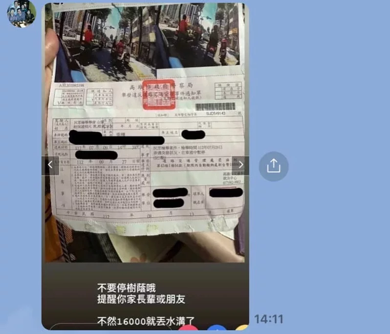 一名網友在臉書社團「高雄五甲大小事」貼出一張罰單,並說:「喜歡躲太陽的,運氣差就會收到。」罰單上一名騎士因躲在樹蔭下,被警方依據違反道路交通管理處罰條例第43條第1項4款製單舉發,開出1萬6000元罰單。