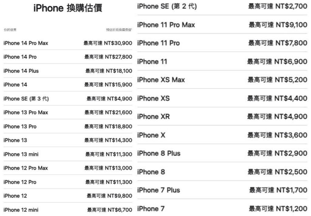 為了讓現有用戶更容易升級至新款iPhone,蘋果特別推出了Apple Trade In換購方案。根據這項方案,iPhone 14 Pro Max最高可折抵3萬900元,這意味著iPhone 14 Pro Max的用戶只需要再支付1萬4000元即可爽拿新款的iPhone 15 Pro Max。