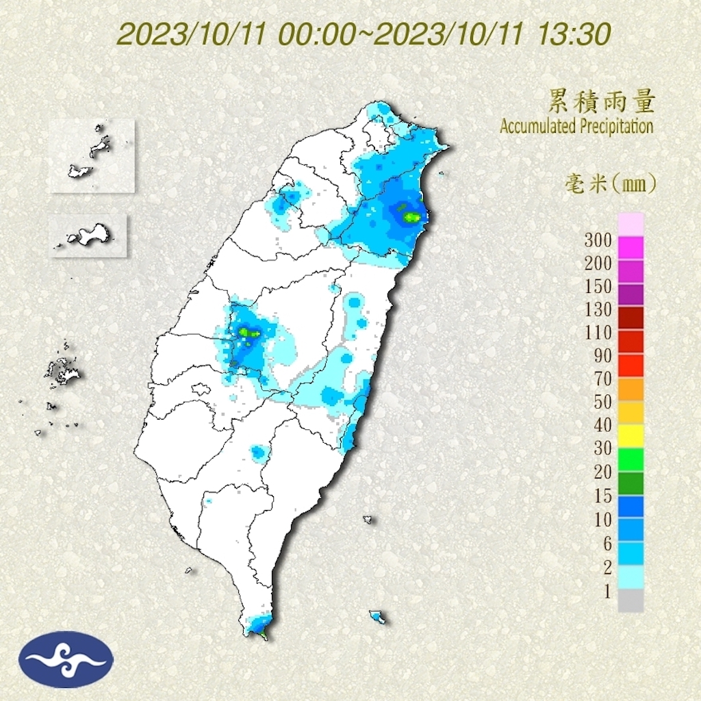 今天(11日)仍受東北季風影響,不過水氣逐漸減少,桃園以北及東半部地區雲量較多,且有局部降雨,但雨勢會較趨緩,其他地區則維持多雲到晴,午後山區及南部近山區平地有局部短暫雷陣雨,尤其山區雨勢較明顯,有局部大雨發生的機率;溫度方面,各地早晚低溫為23到25度,而白天高溫,北部及東北部只有25、26度,全天感受偏涼,花東為27到29度,而中南部則可達31、32度左右,日夜溫差稍大。