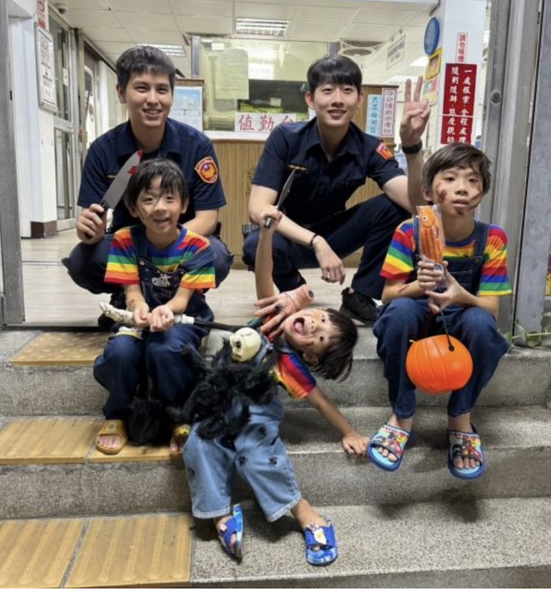 ▼據了解,被稱為「韓系歐巴」的員警名叫陳里揚,面對民眾如此熱烈的反應,他害羞地表示:「自己是覺得沒有啦!但聽到後覺得很開心,感謝大家的讚美。」另一位被稱為「鄰家男孩」的員警林致江則表示:「從警以來第一次被這麼多可愛的萌娃包圍,真的是一個很不一樣的警職生涯體驗,很開心可以與一群萌鬼們度過萬聖節。」